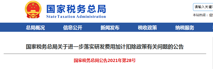 為貫徹落實國務院激勵企業加大研發投入、優化研發費用加計扣除政策實施的舉措,讓納稅人充分享受政策紅利,激勵企業增加研發投入積極性,方便企業提前享受研發費用加計扣除優惠政策,國家稅務總局制發《關于進一步落實研發費用加計扣除政策有關問題的公告》(2021年第28號,以下簡稱《公告》)