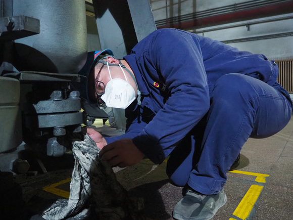 在檢修現場,各種管道“叢林”、大大小小的設備中,點綴著反光條的“運營熒光藍”隨處可見。各班組深入貫徹落實公司“質量提升年”要求,深化設備精細化管理,做到每個環節“回頭看”確保質量,班后做好工作面的現場清理確保整潔。