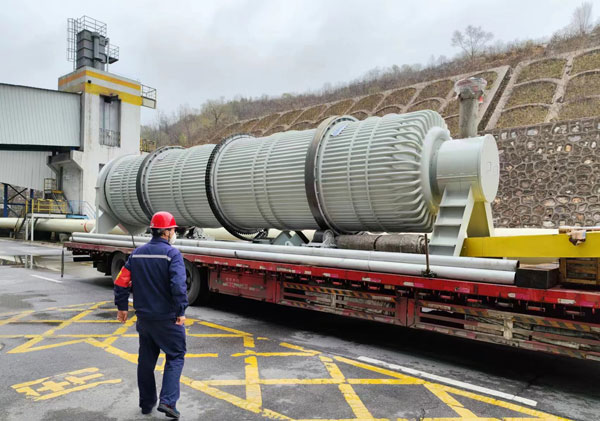本次所吊運的冷渣器重40余噸,長12米,高3米,對這個又高、又長、又重的“大家伙”來說,鍋爐房0米場地顯得尤為狹小。為將它順利請到吊裝位置,吊運小組先后割除了主消防母管、水冷壁下集箱給水管等多個管道。因空間狹小無法使用大型起吊設備和常規起吊方法,吊運小組使用“滾杠”+“倒鏈”的方法,一點點將它往里移動,期間多次調整轉向。重量大、到貨晚致使工期緊張,工作人員輪流“拉纖”,將冷渣器一步步送到指定起吊位置。