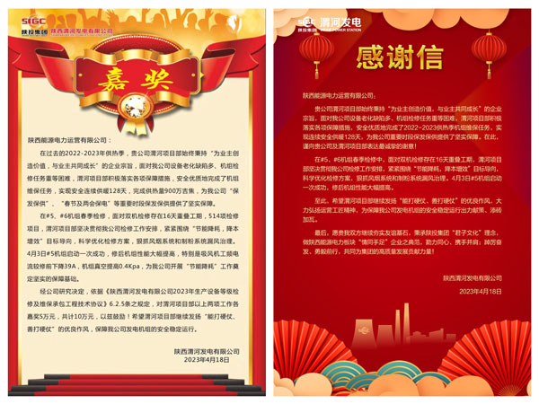 楊建平宣讀了感謝信和嘉獎(jiǎng)通報(bào),對(duì)渭河項(xiàng)目部安全、優(yōu)質(zhì)、高效完成2022-2023年度供熱機(jī)組維保及春節(jié)、全國“兩會(huì)”重要時(shí)段保發(fā)保供任務(wù),#5、#6機(jī)組雙機(jī)檢修后機(jī)組一次啟動(dòng)成功且修后機(jī)組性能大幅提高兩項(xiàng)工作給予高度肯定并嘉獎(jiǎng)10萬元。