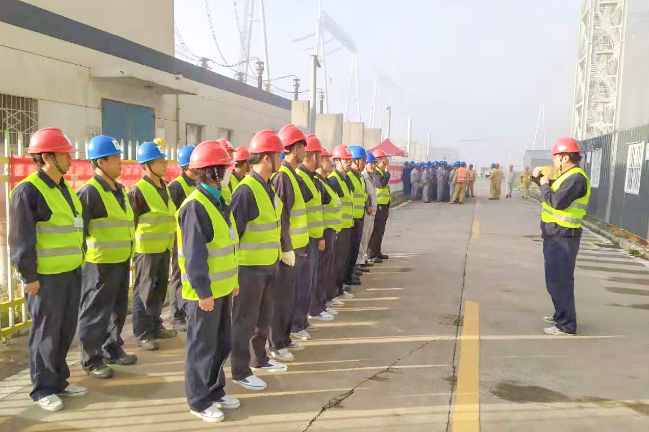 檢修開始后,全體參戰人員嚴格按照升壓站檢修標準,從規范著裝、列隊入場每一個細節認真做起,力求全方位展現電力運營人“專業專注?精益求精”的工作作風。