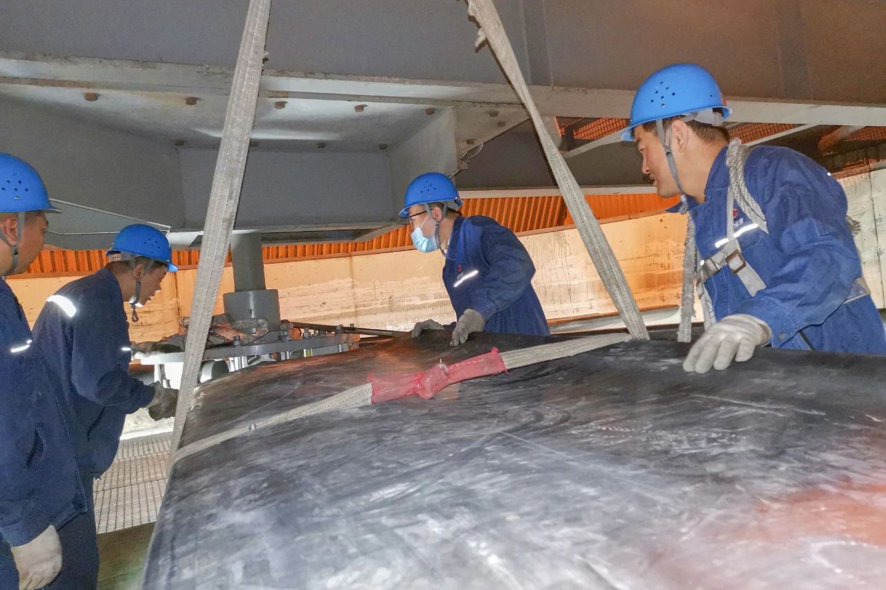 工作現(xiàn)場(chǎng),需要更換的每根葉片重達(dá)500斤,且施工作業(yè)面在距離地將近50米的高空,難度可想而知。項(xiàng)目部從各班組抽調(diào)的人員緊急支援。在空冷島風(fēng)機(jī)高分貝噪音的“狂轟濫炸”以及近70℃熱浪的“侵襲”下,全體搶修人員加班加點(diǎn)拆卸破損葉片,協(xié)調(diào)備件,回裝葉片,各項(xiàng)工作在有條不紊地進(jìn)行著。